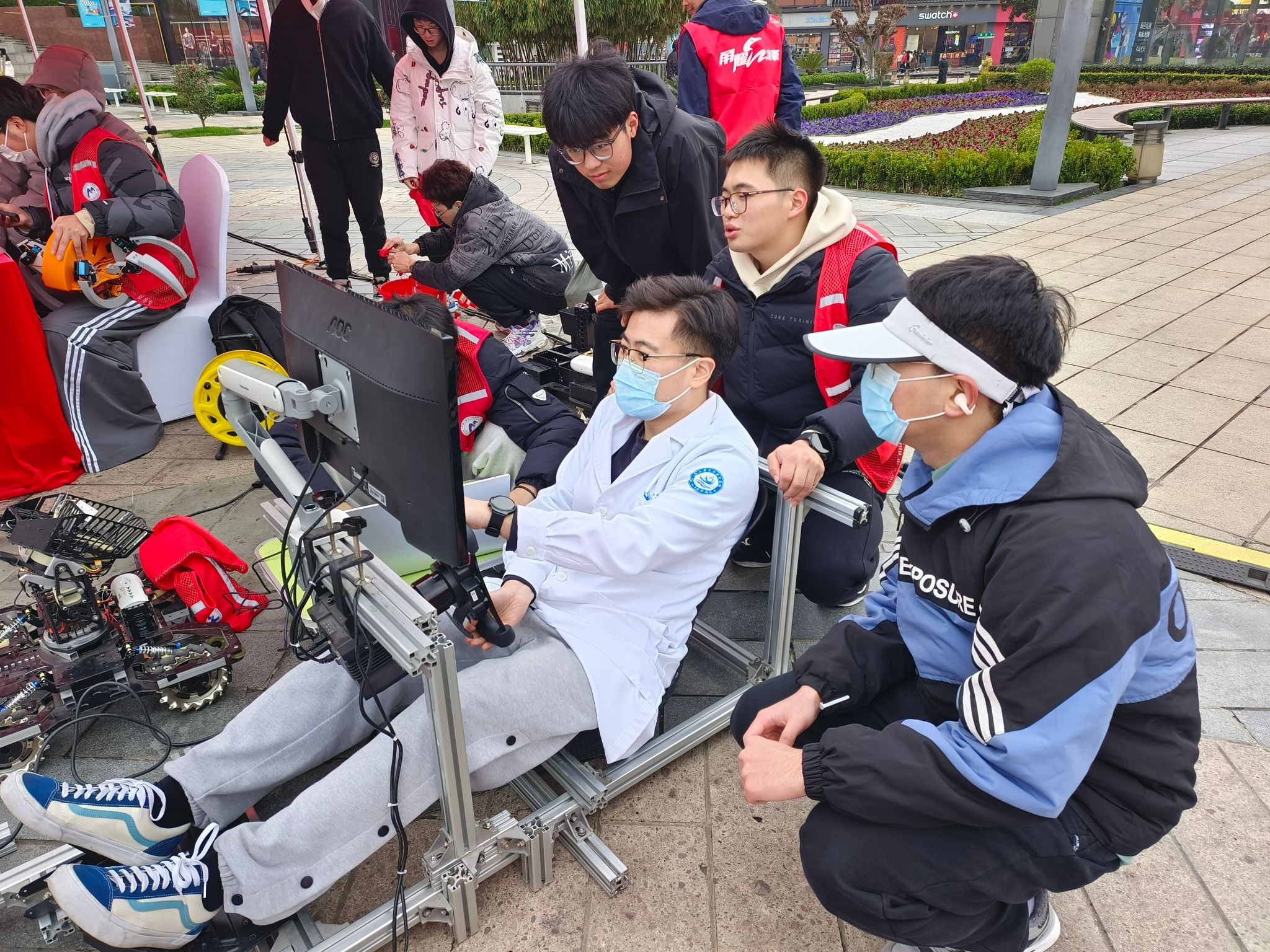 天一广场上,人声鼎沸、热闹非凡,力学科普宣讲团志愿服务摊位前人头攒动。由王正韬同学带来的“蜘蛛侦探”机器人表演吸引了众多市民的目光。此机器人是从消防中队的实地考察中汲取灵感,经过不断改良“蜘蛛侦探”从1.0版本逐步升级至4.0版本。通过简单的指令,“蜘蛛侦探”能够爬行、翻滚,并有参与者现场亲身体验这款机器人的自动避障、自动调平、视觉交互等先进功能。
