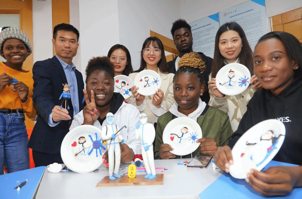 随后的体验环节中,留学生们还以抗疫防疫为主题,在老师的指导下体验了面塑制作,近距离感受非遗魅力。