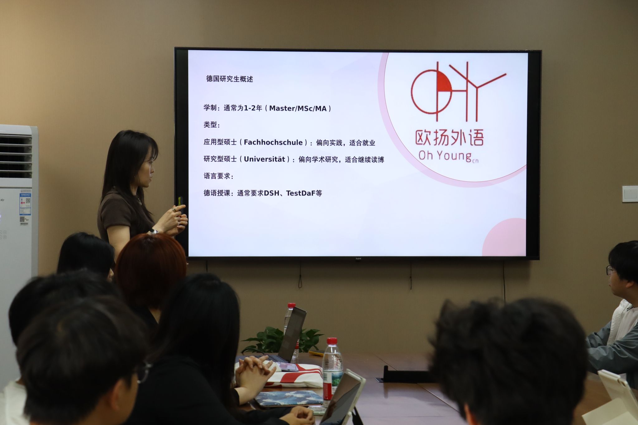 活动伊始,陈老师系统梳理德国机械工程教育体系,重点解读“德国制造”背后的精英培养模式。“德国TU9理工联盟高校如亚琛工业大学、慕尼黑工业大学,其机械工程专业全球排名持续领先,产学研深度融合的特色尤其值得关注。”她通过详实的数据图表,对比分析了德国高校在智能制造、精密加工等领域的学科优势,并现场讲解了DSH、Testdaf等考试申请流程。