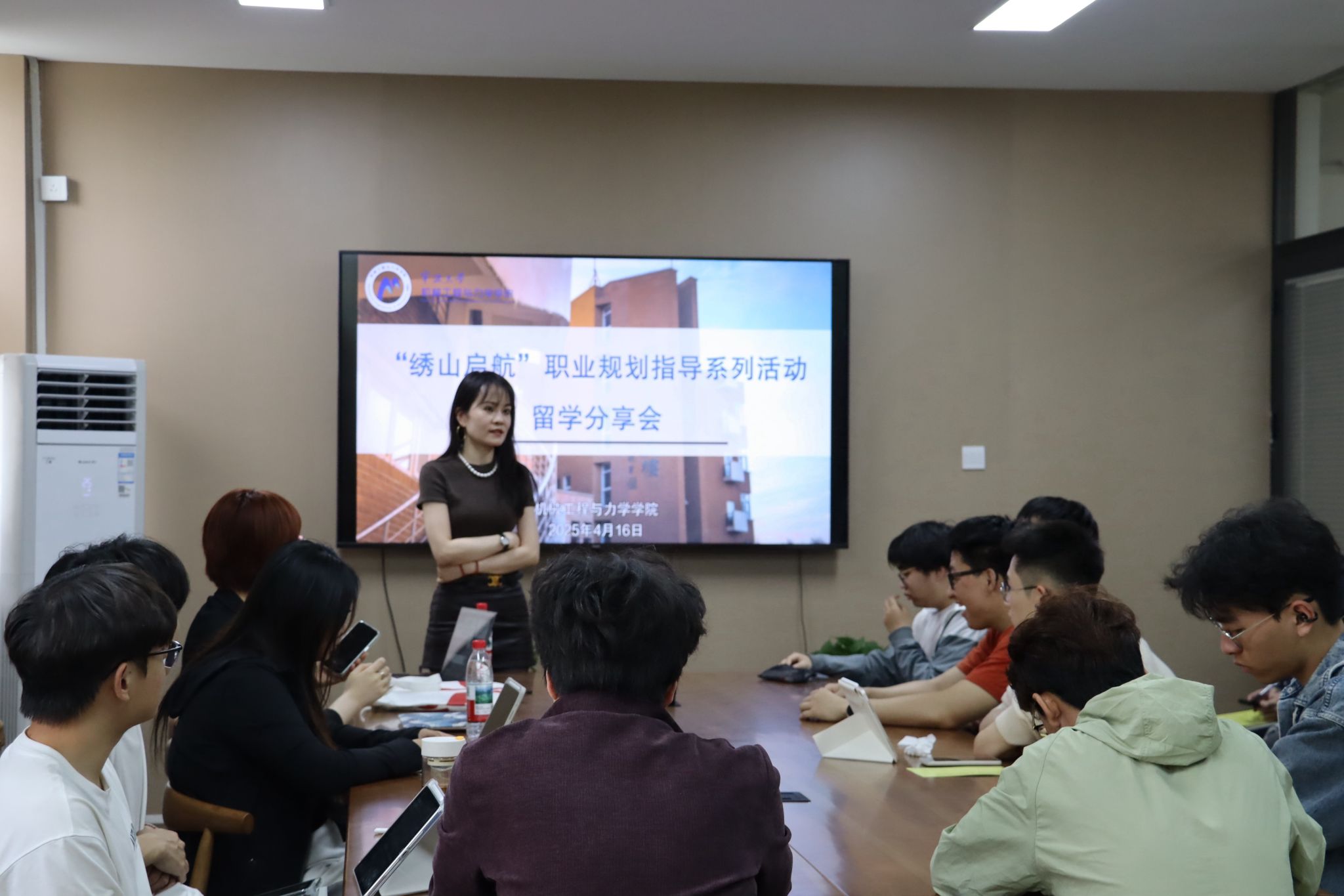 “绣山启航”职业规划指导系列活动留学分享会成功举办。本次活动特邀欧扬外语陈老师、史老师、李老师三位资深留学规划导师,围绕德国、日本机械工程与智能制造领域留学深造主题展开专题指导,30余位学生参与活动。